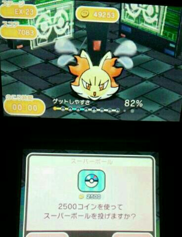 マフォクシーGETだぜ! ポケとる 2015年11月22日 サーナイトをSランクで倒した後、エキストラステージが増えました。 ・ステージEX23 ・マフォクシー(ほのお) ・制限時間 00:30 マフォクシーです。 手かずじゃなくて時間が決まっています。 30秒以内です。 いきなりやってみたら意外と7秒も残りました。 ゲットしやすさは21%。 こんなに簡単に残7秒になるならすぐゲットできると思いました。 なので、ボールは使いません! と思っていたら・・・その後、全然倒せなくなりました。 倒せてもギリギリで残り0秒とか残り1秒とか。 当然、その場合のゲットしやすさは1%とか低い確率です。 そんな折、奇跡的にまた残り6秒が出ました。 21%でゲットできませんでしたが、スーパーボールのスーパーな効果が発現し82%になりました。 つ、つ、使います! 82%なのにGETできず! もう一度・・・ 使います! 二度目の82%でGETできました。 ランクは「A」 この時のパーティです。 メガシンカ枠が「281 メガガブリアス(じめん)」、 他が「250 パルキア(みず)」「210 バンギラス(いわ)」「257 マナフィ(みず)」でした。 ゲットした「174 マフォクシー(ほのお)」の強さはコチラ ↓ 他のポケとる記事はコチラ→ポケとる