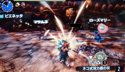 遂に、ニャンターだけでの「円舞獰乱」クリアしました!【MHX】 モンハン 2017年02月26日 こんにちは! 昨日は嬉しいことがありましたよ! ギルドカードも変更しました~(^・ω・^) そうです!遂に、念願の、ニャンターだけで獰猛金銀夫婦「円舞獰乱」をクリアしたんです! 昨夜、遅めの時間でしたが、円舞練習部屋を建ててデカマルコさんとニャンター&オトモで「円舞獰乱」の練習をしていました。 結局失敗(3乙)で終わりましたが、30分生き延びたので成長したよね~と思っていました。 2回目やるかどうかというときにretさんが来てくださり、3ニャンズで2回ほど練習しました。 黒子の装備が良いんじゃないかという話になって、装備を変えてみようかどうしようかなんて言っているところに黒子装備のドナマリさんが来てくださいました! こ、これは期待が膨らみます・・・(ΦωΦ) ちなみに、RARE4以上のオトモ装備は全て持ってますと豪語していた私なのですが、なぜか猛黒子シリーズの頭と胴だけ持ってなかったんです~! ビックリしました!本当にこの二つだけ無い(武器はあった)っていう・・・、なんなの。 ということで猛じゃない方の黒子に着替えて、今度は4ニャンズでトライです(ฅ`ω´ฅ) 2回失敗しました。 メンバー募集のツイートで書いていた終了予定時刻を大幅に過ぎていたので、そろそろ最後にしないといけないかな~なんて思いましたけど、楽しかったし、だんだんイケそうな気がしてきていたので続けていました。 そして、三度目の正直。 銀火竜を墜落させまくり、頭も壊し、尻尾も切れました。 これは、いけるのでは・・・?! いけました!銀火竜が倒れました! あとは金火竜を慎重に、慎重に。 確認したらまだこちらのダウン回数は0です。(保険があったのは秘密) これは、いけるでしょう! つ、つ、ついに・・・ クリアしましたよ~!! なんだか味気ない画面ですいません。 何も写ってない(笑) 興奮しすぎて、落し物も尻尾も本体も剥ぎ取るという行為を完全に忘れていました(^・ω・^) いやー、嬉しい♪ わーい、わーい! 本当に、みんなのお陰です。 ひとりだったら奥さんだけでも3乙しちゃうもん。 そのあと、猛黒子装備の素材を少し集めてから終わろうと獰猛ラージャン狩りにでかけました。 「怒髪に挑めと獰猛な横暴」 なんと、円舞をクリアしたメンバーなのに、1回失敗しました(笑) 燃え尽きて気が抜けたのか、 それとも獰猛ラージャンって獰猛金銀夫婦より強いんでしょうか・・・恐ろしい。 このままじゃ締まらないので、もう一度行きました。 2回目はクリアできましたよ。 ご覧の通り私は死にかけてましたけど(^^;)ギリギリセーフです。 ちなみにこの写真のラージャン最大の限界値のヤツらしいです。 見た瞬間「デカッ!」って思いましたよ~。 それにしても、円舞獰乱がニャンターだけでクリアできてとっても嬉しかったです。 お付き合いいただいた ナスリちゃん(デカマルコさん)、 マサムネちゃん(retさん)、 ジジちゃん(ドナマリさん)、 ビエネッタ(うたこ)、 お疲れ様でした&ありがとうございました~!! クリアできたけど、まだまだ遊んでくださいね♪ 他のモンハン記事はコチラ→モンハン