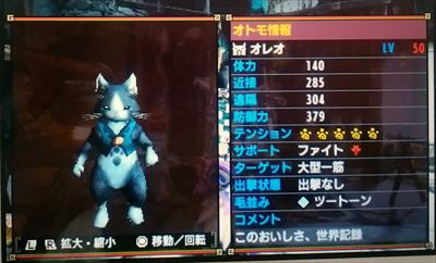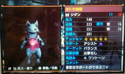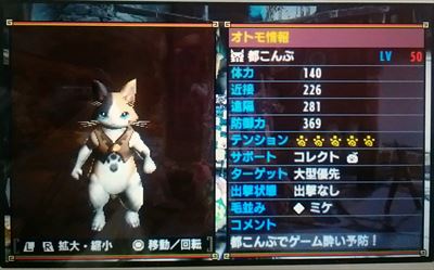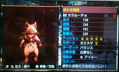 それから、他のハンターさんに譲っていただいたオトモもあと少しで皆LV50です。