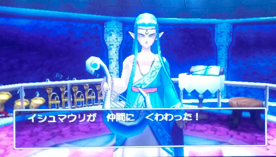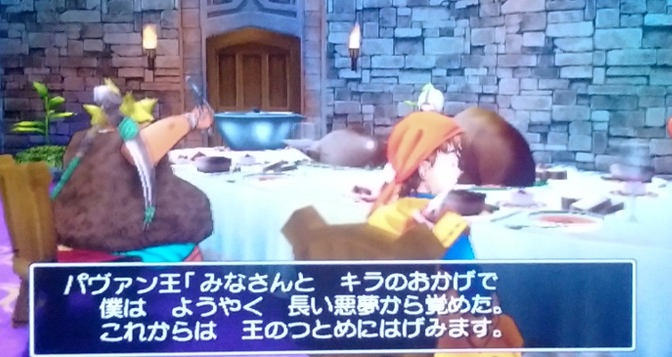 アスカンタ城で働くキラちゃんの言う通りに洞窟から月の見える丘に行って、イシュマウリというとんがり耳のロン毛のお兄さんを仲間にして王様の所へ連れて行ったらお妃様の幽霊に会わせてくれて、王様が元気を取り戻しました。