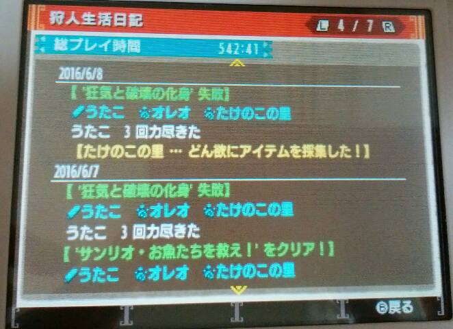 クエ埋めしつつHR119になりました~【MHX】 モンハン 2016年05月15日 こんにちは。 昨夜もTwitter&モンハン部フレンドの瞑想さん2号(ガンナー)と狩りに行きました。 私は集会所★6と★7のクエ埋め中ですがバラバラに進めています。 今回は順番通りに埋めてそうな瞑想さんにクエストを選択してもらうことにしました~。 全部で5クエストやりました。 『極秘依頼!獰猛なる溶岩竜!』 『凍てつく牙は獰猛に』 瞑想さんを大剣で思いっきり斬りつけてしまいました。 ゴメンなさい。 『攻究せよ、鎌持つショウグン』 私のHRが119になりました。 猫の紅玉が出ました。(※1) 『ユクモノ足湯と雷狼竜』 『顕現せし黒蝕竜』 最後死にかけました。(※2) 危なかった~。 ※1 こ、こんなのあるんですか?! 「オトモの尻尾」ならぬ「ネコ毛の紅玉」!!(オトモの尻尾の正体はコチラ) こんな物が実在しているとは知らなかったです。 いやぁ、クエストクリア後の報酬画面で見たときは目を疑いましたよ。 何に使えるのか知らないけど、ネコ好きとしては嬉しいです。 大事に取っておこうか。 ※2 ゴアマガラを倒す直前、私の体力がかなり危ないところまで減っていました。 もう少しで乙るところでした。 倒せて良かった~。 慌てすぎていた為、倒したあとに回復薬グレートを飲んでしまいました。 たぶん、私もいくつかはCLEARが増えたと思います。(←テキトーw) 瞑想さん、ありがとうございました~! また行きましょう。 他のモンハン記事はコチラ→モンハン