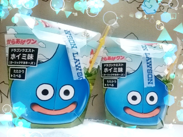 からあげクン ホイミ味を食べて元気が出ました~ ドラクエ 2016年05月12日 ローソンでからあげクン ホイミ味が出るという話は発売前からTwitter等で気付いていました。 スケジュール帳にもちゃんと発売日をチェックしていました。 しかし、当日は雨が降っていたので、ほとんど諦めていました。 そこへ・・・友達から買ったよと自慢(?)のメールが。 しかも、ロトの剣のつまようじでチャンバラごっこしようぜ~とのお誘い文つき。 (※ 私もお友達も大人です) これがなかなか私のモチベーションを上げてくれました。 遅い時間だったけど、ローソンへ!! 店内にはわりとお客さんがいたので一直線にレジに行き、最後の1個を手に入れました。 GET~♪ スライムがあらわれた! ホイミ味っていっても本当はガーリックマヨネーズ味なので、ちゃんと美味しいです。 ↑ ロトの剣つまようじ その後、狩猟音楽祭(モンハンコンサート)の先行予約に当選している事が判明したので「え~、じゃあ近々またローソン行かなきゃいけないじゃ~ん、え~、先に言ってよ~(←確認してなかったのは自分ですが)」と思いました。 とか言って、次の日もその狩猟音楽祭のチケット発券という名目でローソンへ。 えっと、在庫が2個だったので、2個買いました♪ 買い占めました。 これが大人買いってヤツですね。 ↑ ちゃんとまだロトの剣つまようじが付いてました 都会ではもうなくなったみたいな感じですかね~? ついでに、もったいぶってなかなか食べられなかったカリムーチョの期限が切れかけ・・・嘘です、切れてたので、食べました。 濃厚チーズでした。 ホイミ味を食べたらなんだか回復したような元気になったような気がします。 そういえば、スライムのイラスト(焼印)入りのからあげクンがたまに入っているらしいですが、私は15個中ひとつも見てません。 なかなかレアなんですね~。