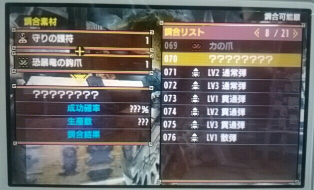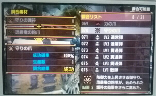 力の爪と守りの爪GETした!&オトモ装備ボックス整理した【MHX】 モンハン 2016年03月08日 身内とローカルプレイでイビルジョーの狩猟をしました。 だって早く「力の爪」と「守りの爪」が欲しかったんだもん。 護符だけだと不安なんだもん。 その前にね、オトモの為に上位のタマミツネ狩りに一人で出かけたんですよ。 そうしたらですね、3乙してしまったんですよね。 だから、そろそろ「力の爪」「守りの爪」を持ち歩こうかな、と。 本当はイビルジョーなんかと戦いたくないんですけど仕方ないですね。 一度、私が2乙して身内が1乙して失敗してしまいましたが、それぞれ武器を強化したりシビレ生肉いっぱい持っていったり工夫して何とか倒せました。 やった!恐暴竜の鉤爪も2個出た! 早速、調合だ~! 力の護符+恐暴竜の鉤爪 ↓ 力の爪 守りの護符+恐暴竜の鉤爪 ↓ 守りの爪 ふぅ、これで少しはラクになるかしら??? そういえば、これで調合書が全部埋まったんですよ。 別に勲章とかは貰えないんですね、意外でした。 それから、オトモの上位装備も増えてきたので、そろそろ箪笥(オトモ装備ボックス)が見にくくなってきました。 もう誰もRARE3以下の装備はしないだろうし見た目は同じで強いのがあるから売る事にしました。 RARE3以下の全部を処分しました。 断捨離です。 スッキリしました。 たぶんイビルジョーを狩猟したからだと思いますがプーギーの服が増えていましたwww かわいいじゃないか かわいいから抱っこしちゃう 関係ないけど、サービスショットも載せておきます。 脚がキレイでしょ♪ 他のモンハン記事はコチラ→モンハン
