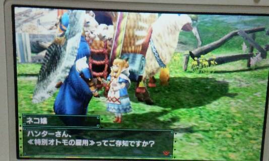 ニャンターモードやってみた モンハン 2015年12月02日 その後、ほとんど朝みたいな時間にニャンターをやってみました。 体験版で1回やった以来です。 本番は初めて。 特に訓練とかはしませんでした。 最初のクエストだしなんとかなるかな~と思って。 ただのスタート画面がもうなんだかかわいい 装備は、ニャンターとオトモ1だけ。 オトモ2は裸です。 ごめん。 でも《特産ゼンマイ》の納品なら大丈夫でしょう。 色々あって・・・ ホラ、大丈夫だった。 ニャンターはお腹が空かないみたいですね。 採集ならニャンターの方が良いって事かなぁ? 肉とかも焼けないみたいだから肉焼き器も持っていかなくて良いです。 アイテムポーチのサイズは同じっぽいです。 クエスト終了後、オトモ広場に行ってみました。 ムーファの背中に乗ってゴロンゴロン (ハンターの「撫でる」と同じみたいです) ゴロンゴロンされてムーファも喜んでいます。 ニャンターもかわいいし、ムーファもかわいいし、こりゃニャンターモードでずっと撫で回してたいですな。 部屋ではフェニーを抱っこします。 抱っこっていうか重量挙げみたいになってるw 続く 他のモンハン記事はコチラ→モンハン PR