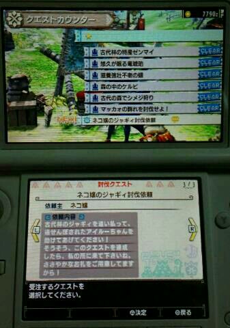 緊急クエストではなかったけど、緊急クエストも出た モンハン 2015年11月30日 前回、村長の頭の上に出ていた赤い「・・・」 どうやら、緊急クエストではなかったようです。 ネコ嬢さんの困り事を解決してやって、という内容でした。 具体的なクエスト内容はこちら。 ジャギィ10頭の討伐です。 簡単、簡単。 どういたしまして~ そしてこの後、本当の緊急クエストを受ける事になりました。 ドスマッカォって誰? カプコンの公式サイトにもある通り新モンスターですね。 えーい!とうっ!でやぁー!! 倒しました。 緊急クエストをこなしたので、村人も私にかなり期待している様子・・・。 ★★のクエストも受注できるようになりました。 他の村へも飛行船に乗って行けるようになったみたいです。 旅の商人によると・・・ ココット村 ポッケ村 ユクモ村 に行けるようです。 ポッケ村はMHP2Gで、ユクモ村はMHP3でハンターとして生活していたので、里帰り気分です。 ココット村は名前ぐらいは存じております、程度ですね。 飛行船窓口です。 楽しみです。 他のモンハン記事はコチラ→モンハン