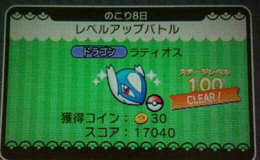 ラティオスのステージレベル100 ポケとる 2015年11月29日 最近モンハン記事を立て続けに書いてましたが、ちゃっかりポケとるもやってます(^^)ラティオスのレベルアップステージで遂にレベル100まで来ました。案の定、それまでより強くなってて2回やってみたけど倒せませんでした。レベル51~99まではそんなに強くなかったです。レベル100も、レベル50の時よりは手応えがあるからアイテムなしでもいつかイケるかな~と思ってます。レベル50以降について。メモとかしてないから間違えてる可能性もあるけど、確かレベル60倒した時に1000コイン、レベル90倒した時に2000コインもらった気がします。勘違いだったらごめんなさい。締め切りまでに100を倒そうと思います。昨日はモンハン記事を書いたあと一狩りしようと思ってました。しかし普段まったくお酒を飲まないのに梅酒を飲んでしまい、猛烈に眠くなって寝てしまいました。買って二日目にノープレイとは情けない…(´`:)