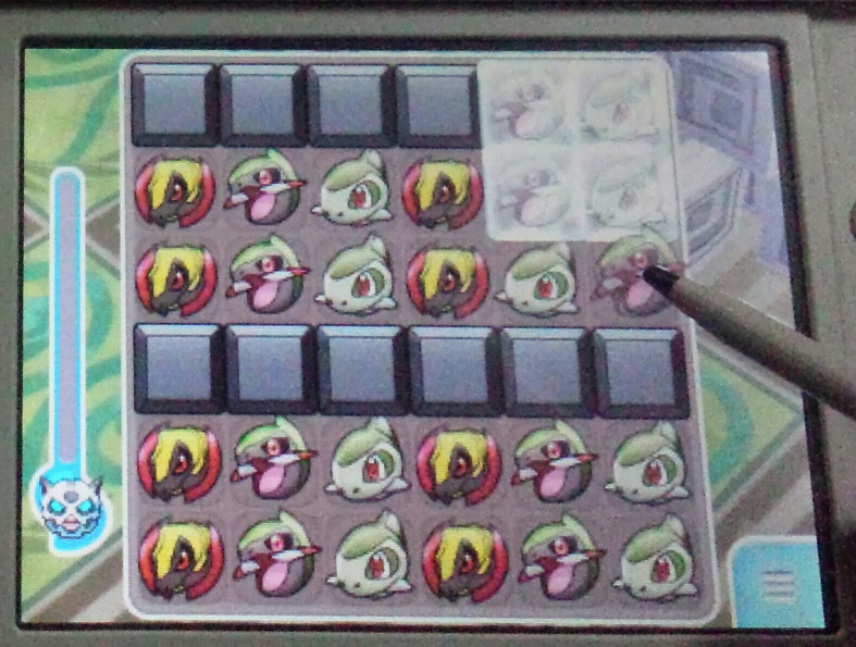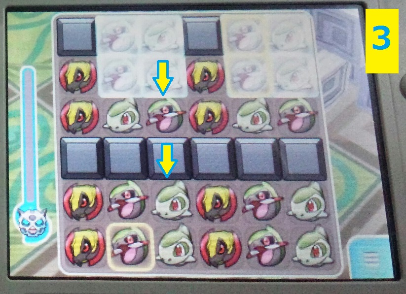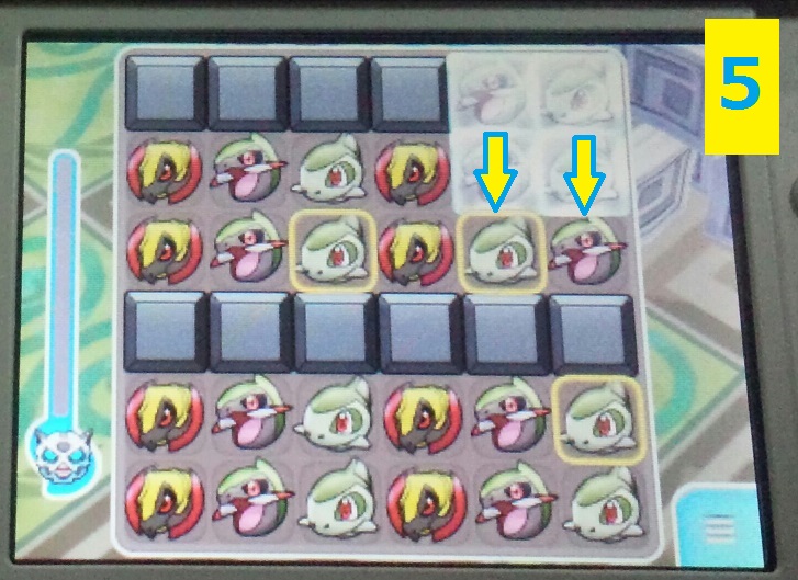 オノノクスの倒し方(ポケとる) ポケとる 2015年06月21日 もうだいぶ前になってしまいましたけど、ポケとるの「ステージ149・オノノクス(ドラゴン)」の倒し方に悩んでいたので、もし同じように悩んでいる人がいたら見てください。 ゲットできるかどうかはわかりません(100%ではない)が、倒せます。 自力でクリアしたい人はこの先の記事は見ないようにしてください。 以下の写真のように動かせば倒せるはずです。 (写真の中のポケモンを囲む黄色い枠線は無視してください) 1.最初に、上から3段目の左端と左から2列目を入れ替えます 2.次に、上から3段目の右から2列目と右から3列目を入れ替えます 3.上から3段目・左から3列目と下から2段目・左から3列目を入れ替えます 4.上から3段目・左から2列目と下から2段目・左から3列目を入れ替えます 5.最後に、上から3段目の右端と右から2列目を~ 入れ替えると~ 連鎖で一気にクリアです! もっとスマートなやり方があるのかもしれませんが、私はこの方法で何度か挑戦したらゲットできました。 倒すだけなら毎回倒せるはずです。 今日はランキングステージのメガカメックスを頑張るぞ~。 メガカメックスのランキングステージは6/22(月)14:00までです。 他のポケとる記事はコチラ→ポケとる