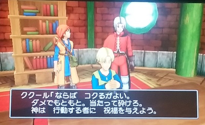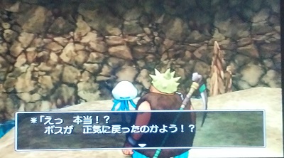 怪力ゴレムス等々を倒しました【DQ8】 ドラクエ 2016年10月28日 昨日はゲーム画面酔いで長くはできませんでした。 モンハンも始めたばかりの頃は気持ち悪くなってたものです。 時々やりたくなる大好きな忍道というゲームも久しぶりにやると酔います。 なぜか都こんぶを食べてからやると酔わないんですけど(プラシーボ?) ということでDQ8はあんまり進んでません。 道端にいる牛に話しかけたらおいしいミルクをGETしました。 錬金釜でチーズ作れるんですね、きっと。 ククールを仲間にして修道院を出発してから、地図を見ながら今まで倒せなかった二つ名モンスター?みたいな奴を倒しに行きました。 初の全滅を喰らった怪力ゴレムスとか。 レベルも上がったしパーティ人数も増えたので今度は倒せました。 あとフィールドの宝箱も取りました。 その後、アスカンタ城に到着。 王様がお妃様を亡くしてから2年もふさぎ込んでました。 メイドのキラちゃんに王様を元気付けたいと相談されてしまいました。 キラちゃんのおばあちゃんの家に行って、その先の洞窟に行く事になりました。 ここで酔いが限界に来たので止めておきました。 次は洞窟?に行って、王様にお妃様の幽霊を見せてやろうと思います。 冒険の内容よりもゲーム酔いを先になんとかしなければという感じです。