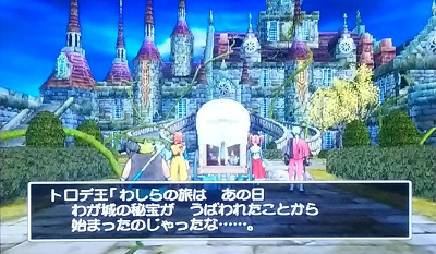 トロデーン城に行きました&バトルロード出場権獲得【DQ8】 ドラクエ 2016年10月30日 前回の続きです。 ドルマゲスを追うため船を探していました。 打ち捨てられた船を見付けました。 が、運ぶ術がありません。 トロデが、この船がある荒野の北に自分の城、トロデーン城があると言っています。 トロデーン城の図書館に船を運ぶ手がかりがあるかもしれないから行こう、と。 トロデーン城は茨に覆われていて、人々も植物にされているようでした。 屋上に植物になった猫もいました。 アニメ『ジョジョの奇妙な冒険 ダイヤモンドは砕けない』を見てるんですけど、猫草が出てきたところだったので「あっ!」と思いました。 トロデーン城では魔法の鍵を手に入れたので、まだ取ってない宝箱を開けに行かねば。 それより、図書館にいたらまた月影の扉が現れてイシュマウリの所へ行く事になりました。 船を運ぶにはもっと大きなハープが必要だと言われて、探しに行く事になりました。 既に出会った人に頼れば良いと言われたけど・・・誰だろ?ルイネロ? モリーに頼まれてたモンスターを3匹倒したので、会いに行きました。 そうしたら、モンスター・バトルロードというのに参加できるようになりました。 初期チームで挑戦してみたけど負けました。 強い奴(ゴレムスとか?)をスカウトしに行こう。 ということで、次にやることは、ルイネロ?か誰かにハープの行方を教えてもらうこと。 魔法の鍵で開けられる宝箱を探すこと。 怪力ゴレムス等の強そうなモンスターをスカウトすること。 あと3日でクリアできるかな~?不安。