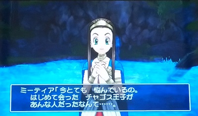 アスカンタの王様復活、さらわれた馬姫も救い出した【DQ8】 ドラクエ 2016年10月29日 気持ち悪いです~。 まだ酔います。 ドラクエっていつの頃からか新作やるたびに吐きそうになってるんですよねぇ。 町の中とかは5ぐらいまでの上から目線な感じが良かったな。 (6はやってないので知りませんけど7はもう3Dだった気がする) さて、やったことを簡潔に書きます。 なんか全部詳しく書くのは無理な気がしてきました。 アスカンタ城で働くキラちゃんの言う通りに洞窟から月の見える丘に行って、イシュマウリというとんがり耳のロン毛のお兄さんを仲間にして王様の所へ連れて行ったらお妃様の幽霊に会わせてくれて、王様が元気を取り戻しました。 ヤンガスの故郷?パルミドに行ったらミーティア姫(馬)がさらわれてしまいました。 盗んだ奴が既に闇の商人に売ってしまっていて、闇の商人が盗賊ゲルダに売ってしまっていました。 ゲルダって海賊じゃなくて盗賊だったか~!やっぱり人の記憶は曖昧ですね。 ゲルダにタダじゃ返せないと言われてヴィーナスの涙という宝石と交換と言われました。 宝石を取りに行って、ゲルダに渡して、ミーティア姫を返してもらいました。 ミーティアを取り返したのでパルミドに戻ってドルマゲスの行方を追います。 情報屋に教えてもらいました。 西の大陸に渡ったようです。 しかし、どうやって渡るか?船が無い。 ということで、船を手に入れるのが先決らしいです。 ポルトリンクの西の荒野に古い船が打ち捨てられているらしいので調査に行ってきます。 あ、パルミドにはカジノもありました。 急いでるので遊んでません。 モリーにも会いました。