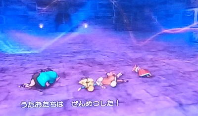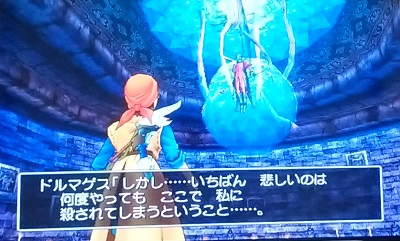 ドルマゲスを倒しました【DQ8】 ドラクエ 2016年12月13日 更新が遅れていますが、DQ8も少しずつ進めています。 ドルマゲスを追い詰めました。 えー、全滅してしまいました。 めげないぞ! えっ、変身するの?! でもなんとか倒せました。 ちょっと、一人ダウンしているみたいですけど・・・、大丈夫、大丈夫! で、やっとドルマゲス倒したね~って喜んでたのに、ゼシカが居なくなっちゃったんですよ。 探しに行ったら・・・ えーっ、これって・・・! ゼシカの故郷にあるリーザス像の所に行って、宝石を手に入れて、ゼシカを正気に戻して、また一人偉大な賢者の子孫が亡くなるという悲しい出来事もあり(これ私達も悪い気がするな~、注意不足というか)、本当の敵はドルマゲスではなくラプソーンだとわかったり色々ありました。 今、ドルマゲスやゼシカをおかしくした杖を持っているのは、ハワードさんちの黒犬レオパルドちゃんです。 レオパルドを追って、オークニスって所に着いたところです。 ククール神が面白かったです。 早くオークニスの人たちの話をちゃんと聞いて黒犬レオパルドを見つけたいです。