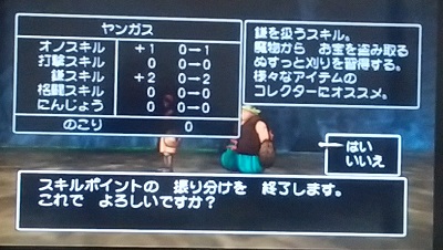 ドラクエ8はじめました【DQ8】 ドラクエ 2016年10月24日 今始めるなら『モンスターハンターストーリーズ』でしょ。 と思うでしょ。 でもドラクエ8を始めました。 理由は前回の記事に書いた通りで、コンサートの予習です。 早速、新しく冒険の書を作りました。 この先ネタバレみたいなことを気にせずに書いていくつもりなので、知りたくない方はDQ8の記事は見ないでくださいね~。 いきなりスライム達と戦うことになりました。 全然覚えてないんですよね~。 オープニングから一緒にいるトーポ。 いつの間に名前を付けたんだ? なんとなく、このコの目線になって何かをしたことがあるような・・・と思い出しました。 小さい穴から出入りして何かを探す、みたいな。 記憶違いかもしれません。 最初からトーポ、ヤンガス、トロデ王、ミーティァ姫(馬)と一緒にいました。 トロデ王から、自分や娘ミーティアに呪いをかけたドルマゲスを探すように指示されました。 最初の街 トラペッタ に行って手がかりを探すことに。 トラペッタにはドルマゲスの師匠がいるんだって。 って、行ったら師匠が火事でお亡くなりになっていました。 街には元カリスマ占い師がいて、その娘に水晶を取ってくるように頼まれました。 水晶は街の南の洞窟にあるって事を娘に占ってもらいました。 序盤だし楽勝かと思ってあまり準備もせず行ったら洞窟のB1で死にそうになり引き返しました。 しかも、レベルが上がったらスキルポイントを振り分けろとか言われてワケがわかりません。 もちろん覚えてません。 ついつい適当に振り分けてしまったけど、あとで調べて後悔しました。 調べた後の今後の方針としては・・・ うたおは、ブーメラン40まで上げてから勇気を100までその後は剣を上げる事にしました。 ヤンガスは、オノを66&人情16まで上げて格闘33まで鎌を22まで上げる事にしました。 (間違ってる感じなら教えてください!) あと、最初の洞窟ですが思ったより進むのが辛かったので武器を買うことにしました。 ブーメランなら全体攻撃だし早くモンスターを倒せるかな~と。 420G貯めるの大変でしたよ。 って、頑張って武器を買ったのに・・・。 案外、安い値段で生き返らせてくれましたけどね。 ヤンガスが死ななくて良かったです。 ちょっと、防具を買うのはお金がもったいなくてイヤだったのですが、死んだらもっともったいないので揃える事にしました。 これで、装備は今の時点で完璧になったので、次回は洞窟の地下2階以上に進みたいと思います。 というか、水晶をGETして元カリスマ占い師の娘に渡そうと思います。 今日の名言 トロデ王「人を見た目だけで 判断するとは なさけないのう。 人は 外見だけではないというに・・・・・・。 寄り道はせずにやろうと思っていましたが、3時間ほどプレイしてまだ最初の洞窟の地下1階までしか進んでいないという現実。 コンサートまでにクリアできるか怪しいですね(^^;)
