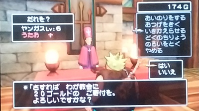 ドラクエ8を始めても良いのかどうか悩む【DQ8】 ドラクエ 2016年10月18日 こんばんは~! 久しぶりのモンスターハンター以外のネタです。 DRAGON QUEST Ⅷ です。 なぜ、MHXもまだまだやるって言ってる私がこんな事をしようとしているかというと、ドラクエコンサートの為であります。 コンサートの前には予習(復習?)の為に大体プレイするんです。 フィールドや戦闘の音楽って聴けば思い出せたりするけど、ゲーム中にそんなに繰り返し聞かない曲って忘れたりしません? しかも、私はⅢとかⅣとかだったら結構覚えてますけど、それ以外はあんまり覚えている自信がありません。 という経緯があって、改めてⅧを始めようかな~と。 モンハンが忙しいので絶対やると決めたわけじゃないけど、とりあえず、冒険の書を見てみました。 6つぐらい記録があって、まったく何も覚えてないから、とりあえず一番長いプレイ時間144:20の冒険の書1をはじめてみました。 ん?私、ヤンガス? あぁ、2人目にいました、主人公。 ヤンガスが先頭にいたようです。 なんか最終装備っぽいですね。 全然記憶に無くてよくわからないけど。 っていうか銀行に預けてるのかな?お金が少なくないですか? とりあえず、その辺にいる人に話を聞いてみました。 ふーん。 誰だ? これたぶん旅の傭兵って私たちですよね? ドラクエ的な展開としては。 全然覚えてないけど。 あぁ、この屋敷に入れば何か思い出すかも・・・。 と思ったけど、入るのは止めました。 せっかく(?)こんなに何もかも忘れてしまっている記憶喪失レベルの私なら、最初からやったらすごく楽しめそうじゃないですか。 MHXもまだ遊び足りないのでいつ始めるかわからないですけど、コンサートまでにはドラクエ8を最初からやり始めるかもしれません。