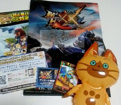 「MHXX 秋の体験ツアー」に参加してきました~!!【MHXX】 モンハン 2016年12月04日 2016年12月3日(土)、大阪中央区某所にて「MHXX 秋の体験ツアー」に参加してきました~! 某所の受付カワイイ~! クリスマス仕様ですねぇ。 こんな職場で働きたいです。 参加者は60~70人ぐらいでしょうか。 受付後、4人一組に分けられてテーブルに座りました。 かわいい ↓ 最初にマルチプレイ20分、あとからソロで20分、体験しました。 4人でどの武器・どのスタイル・どのモンスターに挑戦するか相談します。 やっぱりバルファルクは戦ってみたい、ということでモンスターは決定しました。 ブレイヴスタイルは自信がないので、マルチプレイではエリアル大剣で行く事にしました。 他の方は、エリアル操虫棍・?双剣・?双剣でした。 (すいません、忘れましたけどエリアル以外のスタイルでした。ブシドーかな?) 17、18分ぐらい戦ったところで3乙終了してしまいました。 私も1乙しちゃった。 でも、尻尾が斬れたから頑張った! 開発の人達でも倒すのに15分かかるらしいので、今日初めての人とやって尻尾斬れたって充分でしょう。 倒せなかったけど楽しかったです。 人見知りの私が知らない人と遊んでも楽しいってすごいゲームですよ。 流石っすよ、モンハンダブルクロス。 一緒に組んだ人達、よく観察してるな~と思いました。 バルファルクの動きを冷静に観察して説明してくれてたので次に来る攻撃を予想できました。 (私の腕では予想できたからって避けられるわけじゃないけど) 乙っても殴っても怒らない優しい人たちで良かったです(^^) ありがとうございました。 開発の方から聞いた話では、ブシドー大剣も動きがちょっと変わったということです。 最近は闘技大会などでブシドーを使う機会もあるので興味ありますけど、まだ使いこなせていないので今日は選びませんでした。 あと終わってから聞いたバルファルクに隙ができるタイミング。 ちょっと私の文章力では表現できなくて申し訳ないですけど、このタイミングで攻撃を当てまくるとチャンスができます、っていうのを教えてくれました。 「先に言ってよ~」と言われて、「えへ、開発の悪い癖ですw」とか仰ってました(笑)。 バルファルクに3乙したあとにイャンクックに挑戦しようとしましたが、始めたらすぐに時間が来てしまいました。 マルチプレイのあとは、テーブルを移動してソロプレイ。 こちらは乙を気にせずブレイヴを体験してみようと思いました。 ひとまず、懐かしいベリオロスへ、ブレイヴ大剣で挑戦。 テーブルに操作方法を書いたものを準備してくれていたのですが(撮影禁止)、見ながらでも私には難しかったです。 でも、なんとなく最後にはなんとか当たるようになってたかな~? ベリオロスは倒せました。 時間が少し余ったので、ニャンター(カリスマ)でバルファルクに行きました。 結構すぐに1乙してしまいました。 でもそのあとは慎重に行って、時間切れでした。 ニャンターの新しさは実感できず。 もっと修行しなければいけませんね~、と反省しました。 ポスターやら飾ってあったのですが、反射してキレイに撮れませんでした。 プレゼントをかけたじゃんけん大会も全滅でした。 途中で小嶋Pの出す手が…。 ・・・ということに気付いたので結構勝ち進んだんですけど、最終的には負けてしまいました。 その後、参加賞のお土産をいただき、小嶋Pにサインを貰って写真も撮ってもらい、フェスタの時にすれ違いでもらったオトモのいっちゃんを大事に育てていますとお伝えできました。 これでMHXXの体験会は終了。 ここからモンスターハンター ストーリーズの体験もさせてもらうことにしました。 こちらは20分間好きに遊んでくれという感じでした。 前の人のセーブデータが残ってたらそこから始めても良いと言われましたけど、一応、最初から遊んでみることにしました。 時間がないのにキャラメイクにまぁまぁ時間を使ってしまいました(笑) 事件の1年後の儀式の辺りで時間が来てしまいました。 ちょっと続きが気になってしまいました。 リオレウスのレウスくんが気になる・・・。 こちらではナビルー人形をいただきました。 ジワジワくるお顔立ちですよね~。 万人受け可愛いアイルー&キティとの対比! 良いと思います! 小嶋Pのサイン入りファイル等お土産をいただきホクホク家路につきました。 MHXX 秋の体験ツアー、本当に楽しかったです。 役に立つ情報を書けなくてごめんなさい。 でも、面白いですよ。 モンスターハンターダブルクロス買うと思います! モンスターハンターダブルクロス (【初回封入特典】『モンスターハンターダブルクロス』オリジナル「テーマ」(2種)のダウンロード番号 同梱) 新品価格 ¥5,115から (2016/12/4 00:40時点) すれ違いもいっぱいしてました。 この記事の最初に載せた画像がこの日の私のギルドカードです。 私とほぼ同じ装備(カティコス)のHR800越えの方もいらっしゃいました♪ 他のモンハン記事はコチラ→モンハン PR