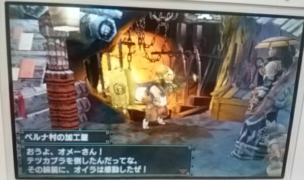 やっと緊急クエスト(テツカブラ)やりました【MHX】 モンハン 2015年12月29日 村クエ LV★★が終わったので、遂に緊急クエストやりました テツカブラ退治~! 今回のモンハンで初めて一回死にました(1乙って言うんですね) 吹き出しがいっぱい! 村長 ★3のクエストが受けられるようになったって 受付嬢 あ、ホントだ 食材も増えたよ(リノプロシュートとベルナス) リノプロシュート+アンモミート ベルナス+アンモミート ベルナス+ツチタケノコ リノプロシュート+古代真鯛 モガニ+リノプロシュート モガニと古代真鯛は食材リストの2ページ目だったので見逃すとこでした 狩技も増えました 新しいメニュー ↓ ベルナ村の加工屋さん あ!団長!!お久しぶりです! チコ村の村長さん 消散剤が買えるようになりました オトモ広場にカワイイ気球が~! モンニャン隊にお願いできるようになったらしい どうやるんだろう?楽しみだな~ この後も色々知ってる人(他のシリーズの登場人物とか)が出てきたり頼みごとをされたりしましたが、数が多すぎるので写真を撮るのにも疲れてしまいました。 まぁ、色々ありました。 ★3以降はちょっとスピード上げていこうかな。 他のモンハン記事はコチラ→モンハン PR