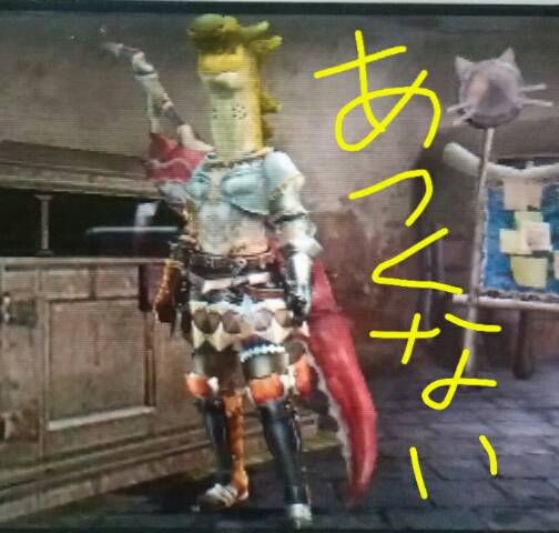 オトモのレベル上限が上がった&上位防具作ってみた【MHX】 モンハン 2016年02月23日 どうも~。 ブログの更新はそんなにしてませんがモンハンは少しずつ進んでいます。 ちょっと何のクエストだか忘れてしまいましたけど、集会所の上位のニャンタークエだったと思います。それをやったら、オトモのレベル上限が35まで上がるようになりました。 わーい、わーい! 既にLV.20で成長が止まってたオトモが12匹もいたので良かったです。 それと、上位のクエストをやるために現在の私のしょぼい装備を一新しようと色々考えていました。 頑シミュと睨めっこしながらね! 使えそうなお守りは全部入力しましたよ。 オンラインの楽しさも少しずつ感じている私ですが、いちいち着替えると申し訳ないし、快く待ってくれるんですけど勝手に焦っちゃうから、どんなクエストでもとりあえず行けそうな装備を考えました。 私、方向音痴なんですよ。 しかも心配性なんですよ。 記憶力も悪いんですよ。 だから、私の欲しいスキルは「ハンター生活」「自動マーキング」「捕獲の見極め」 何年前からモンハンやってるんだって感じの初心者っぽさですけども、腕は本当にいつまでも初心者ですからね、良いんです。 その3つのスキルを基本に、追加でそれぞれ「毒耐性」「暑さ無効」「寒さ無効」が付いた3セットをしばらく着回そうと思います。 早速、頑シミュSTART! ●「ハンター生活」「自動マーキング」「捕獲の見極め」「毒耐性」付きの装備 リモスSフェイク ゲリョスSメイル クロオビSアーム インゴットSコイル クロオビSグリーヴ 狩人珠×3、観察珠×2、お守り(千里眼+7) ●「ハンター生活」「自動マーキング」「捕獲の見極め」「暑さ無効」付きの装備 リモスSフェイク 混沌のカイ・覇 ハントSアーム インゴットSコイル クロオビSグリーヴ 狩人珠×2、観察珠×1、千里珠×1、耐暑珠×1、狩人珠×1、お守り(耐暑+8) ●「ハンター生活」「自動マーキング」「捕獲の見極め」「寒さ無効」付きの装備 リモスSフェイク 混沌のカイ・覇 ハントSアーム ハンターSフォールド クロオビSグリーヴ 狩人珠×1、観察珠×1、耐寒珠×3、千里珠×1、お守り(観察眼+8) 当たり前だけどさ、素材も上位の物を揃えないといけないから大変でした。 クロオビSアーム&グリーヴを作る為に今作で初めての闘技大会クエストもやりました。 闘技大会って装備選べないから、対ケチャワチャで太刀を使いましたよ。 MHXでは大剣とニャンターしかやってなかったから、太刀なんて何年ぶりよ? そんなこんなで苦労しつつもなんとか先ほど全セット完成いたしました~! だがしかし! 頭の共通装備「リモスSフェイク」の見た目がかっこ悪すぎる!! オンライン用にも使えると思ってこの装備にしたんだけど・・・これじゃあ笑われちゃうかも。 もし一緒に狩りに行くことになっても笑わないでね? 気になる見た目はこんな感じ ↓ ・ ・ ・ ・ ・ でも、せっかく作ったんで当分この装備で行きますよ! 鎧玉も遂に使っちゃうよ~。 今まで防御力2桁しかなかったから急に強くなっちゃうわ、嬉しい♪ これで村クエ埋めも再開しやすくなった~、頑張る! 他のモンハン記事はコチラ→モンハン PR