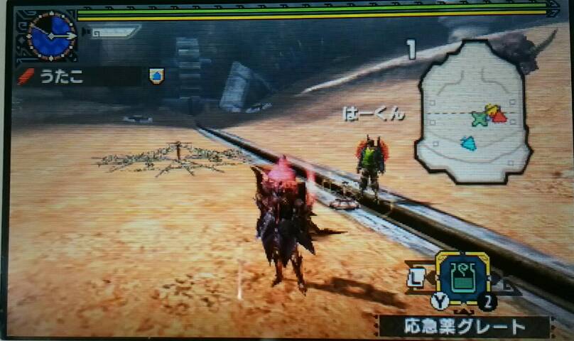 ゲネル・セルタスやらクエ埋めを手伝ってくれました【MHX】 モンハン 2016年05月25日 こんにちは。 オトモ装備のためウラガンキンを一人で何頭も狩っていたのですが、「なかなか疲れたな~」というような内容の事をTwitterで呟いたところ、手伝ってくれると名乗りを上げてくださる方がいらっしゃいました。 モンハン部のフレンドの方にもそういうときこそオンラインと言っていただきました。 本当にありがたいことです。 Twitterとかモンハン部があるから今までのシリーズよりモチベーションを維持しやすいような気がします。 さて、前置きが長かったですが、そのTwitterフレンドのお二人を誘って久々にお部屋を作りました。 一人目のお客様、はーくん。 「お久し振りで~す」 はーくんには今まで何度か私の素材集めやクエ埋めを手伝ってもらっていて、Twitterでのやりとりはあるのでそんなに長く一緒に狩りに行ってないとは思ってなかったのですが、実に2ヶ月以上ぶりでした! (前回の様子はこちら) いつもこちらが手伝ってもらってばかりで申し訳ないわ・・・と言いつつ、早速オトモ装備充実のためのゲネル・セルタス狩りを手伝ってもらいました。 もう一人誘っていましたが、まだっぽかったので先に二人で行きました。 『難攻不落の重甲虫』です。 狩りの途中、二人目のお客様、瞑想さんがいらっしゃいました。 ゲネル・セルタスを必死で狩っていたので待っててもらい、倒してから帰還。 瞑想さん、お待たせしました。 腕が鈍ったと嘆くはーくんとお馴染み瞑想さん2号と私 瞑想さんとは、前回のオンラインもご一緒しました。 (その模様はこちら) この後は、お二人が私のクエ埋めを手伝ってくださることに。 じゃあ、お言葉に甘えて・・・集会所★7でまだクリアしてないクエをお願いします! 『熱気で熱狂! 炎の軍勢!』(イャンガルルガ、ウラガンキン、アグナコトル、リオレウス、ディノバルド in 闘技場) 『ビリビリバリバリパニック!!』(フルフル、ラギアクルス、ジンオウガ、ラージャン、ライゼクス in 闘技場) うっ、当然だけど一人でやりたくないようなのが残ってます。 流石にこれだけモンスターが出てくると3人でやっても時間がかかりますね。 どっちのクエスト時だか忘れたけど、最後、皆で罠を仕掛けまくったときちょっと面白かったので写真を撮りました。 罠を仕掛ける瞑想さん2号 ↓ あ、モンスターを倒して次のが出てくるまでの時間だったので写真が撮れたんですよ。 このあと更にはーくんが罠を仕掛けて、狭いエリアに3つも罠が設置されていてなんか笑えました。 はーくんはフルフルが好きだって言ってたのですが、忘れてまして・・・ フルフルと戦ってる時のはーくんがテンション高すぎて面白かったです。 そういえば、以前もフルフルと戦ってた時こんなんでしたね~。 フルフルの亡骸の前で呆然とするはーくん ↑ ということで、今回も色々失敗したりしたけど、笑って許してくれる二人で良かったです。 とっても楽しく、しかも苦手なヤツを倒せて有意義な狩りでありました。 また、よろしくお願いしまーす! バイバーイ はーくん、 瞑想さん、 ありがとうございましたー! 終わってからTwitterを見たら瞑想さんがこの後に村クエやってるのを知ってスゴイなぁと思いました。 ガンナーって指が疲れそうだけど慣れると平気なのかな? 他のモンハン記事はコチラ→モンハン PR