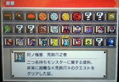 二つ名すべてクリアしました~!【MHX】 モンハン 2016年11月08日 こんにちは。 昨夜は、月隠師匠、クロさん、かおりゅんさんとオンラインで狩りをしました~! Skype狩りだったため(まだ慣れないw)写真はほとんど撮れませんでした。 ゲームしてるとだんだん手というか3DSが顔の目の前に来ちゃうのでしばしば音がぐわんぐわんしてご迷惑をおかけしているみたいです・・・。 音声をOFFにしてプレイする練習しようかしら。 さて、今回はそれぞれクリアしたいクエスト、集めたい素材など好きな事をやろうぜという主旨の集会でした。 私は二つ名ラストの荒鉤爪10をやろうと思ってました。 あとは、強化しきれてない装備に必要な素材をチェックして選びました。 ①荒鉤爪狩猟依頼4 ②燃えさかる大河 ③紫毒姫捕獲依頼7 ④荒鉤爪狩猟依頼10 HR319に。 ティガレックス最大金冠 &荒鉤爪ティガレックス最大金冠(サイズ更新)が出ました。 これで荒鉤爪ティガレックスを全てクリア! ということは、二つ名を全てクリア! わーいヽ(^◇^*)/ ⑤氷点下の支配者 ここからは育て中のニャンターいっちゃんで参加しました。 だいぶニャンターも慣れてきたかな??? ⑥電光煌めく飛竜の夜 尻尾切りにも成功して良かった~。 HR320に。 ⑦轟虎憑海 ⑧白と黒の乱舞 パペットチケットが欲しかったのだ。 わたし的には二つ名がすべてクリアできたのが嬉しかったです。 皆でやると素材集めとかクエ埋めも楽しいですね。 難しいクエストも簡単なクエストもそれぞれ楽しいです。 ティガレックスをいっぱい狩った夜でした。 月隠師匠、 クロさん、 かおりゅんさん、 お疲れ様でした&ありがとうございました~! 二つ名は防具(剣士用)も全て作成&最終強化までしました。 猫用装備も全部作りました。 (ブログには書いてなかったかもしれませんけど、猫用装備はRARE4以上は全て作成してます。) そうそう、二つ名のチケットはほとんどずーっと99枚ある状態が続いていて、すれ違っても増えないし、売れないし、何となくもったいないので、二つ名の最小最大を埋めたい方、素材が欲しい方など、Twitterやモンハン部で声をかけてくださればクエ貼りに出向きますよ~。 遊びで作った実用的ではない装備でも強化途中だと気持ち悪くて最終まで強化したくなるので素材集めツアーとかもやりたいな。 他のモンハン記事はコチラ→モンハン PR
