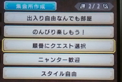 出入り自由なんでも部屋【MHX】 モンハン 2017年02月13日 こんばんは~。 またMHXで集会所を作って遊びました。 すぐには誰も来なかったので、一人でドドブランゴと遊んでいたら、retさんが来てくれました♪ 続いてデカマルコさんも来てくれました♪ リタイアして、一緒にドドブランゴに付き合ってもらいました。 皆ニャンターです(^・ω・^) 「①雪山の主、ドドブランゴ」 最後、卵を運んでたら虫に刺されて割れちゃいました! 「②長い者に巻かれた!」 出発しようとしていたら、モンハン部からDさんが遊びに来てくれました。 モンハン部ではフレンドなのですが、ご一緒したのは初めてだったかもしれません。 ニャンターで参加してくださいました。 1戦だけご一緒してDさんがお帰りになり、また3匹で遊びました。 「③白疾風狩猟依頼10」 ハ、ハゲルー! 恒例の「④円舞獰乱」 恒例の失敗・・・。 今日の夫婦はいつも以上に強かったです。 まずは嫁を倒そうということになり 「⑤太古に浮かぶ、黄金の月」に行こうとしていたところに、お久し振りの瞑想さんが来てくださいました♪ 瞑想さんもニャンターで(ΦωΦ) エース・・・エース清水ちゃんですな! 失敗しちゃったけど、次は負けないぞ。 「⑥金雷公狩猟依頼9」 金雷公ジンオウガにネコ式活力壷のおすそ分け(^^) 一瞬、回線が獰猛化してretさんが行方不明になっていましたがすぐに復帰、ホッ。 最後に「⑦紅兜狩猟依頼10」をニャンター4匹でやっつけて終わりました。 今回も楽しく厳しく遊べて面白かったです♪ もしかして今日ずっと皆ニャンターだった? retさん、 デカマルコさん、 Dさん、 瞑想さん、 お疲れ様でした&ありがとうございました~! 他のモンハン記事はコチラ→モンハン PR