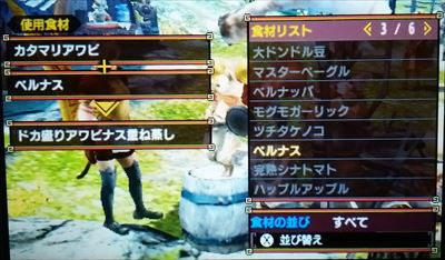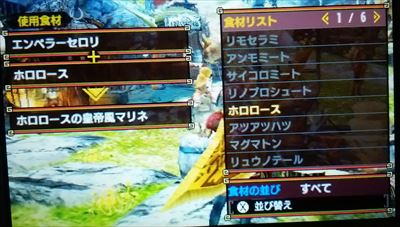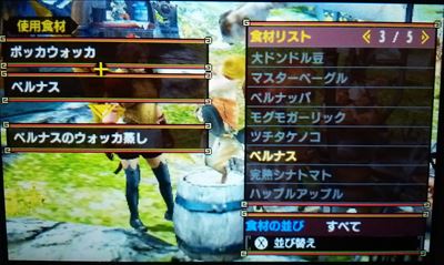増えた食材、新メニュー【MHXX】 モンハン 2017年04月06日 昨夜の狩りで吹き出しクエをたくさん消化できたので、食材が増えました。 その記録です。 ボッカウォッカ + ベルナス = ベルナスのウォッカ蒸し こ、これは嬉しい!作りたいです!! 大ドンドル豆 + コダイオウイカ = ドンドル納豆イカソウメン和え 納豆は食べられないので個人的にこれは要りませんね~。 体には良さそうですね~。 エンペラーセロリ + ホロロース = ホロロースの皇帝風マリネ エンペラーセロリ + コダイオウイカ = コダイオウイカの宮廷風煮つけ エンペラーセロリからは二つメニューが増えるようですのでご注意くださいませ。 カタマリアワビ + ベルナス =ドカ盛りアワビナス重ね蒸し ベルナスって万能だね。 ということで、増えた食材と新メニューの記録でした♪ お腹が空いてきますね(^^) 他のモンハン記事はコチラ→モンハン PR