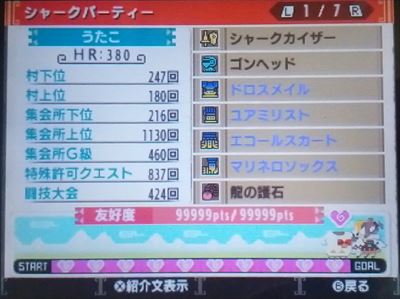 大雪主とか友好度MAXとか【MHXX】 モンハン 2017年07月18日 こんんばんは~! 昨日はかなり深夜にこっそり・・・というか始めるのが遅すぎたのでクエストボードやTwitterでは告知せずに、いつもの部屋を作りました。 (フレンドはパス不要にしています) 変な時間にも関わらず、デカマルコさん登場。 一緒に、大雪主狩猟依頼G5をやってもらいました。 二人だったけど、クリアできました! これで超が受けられる状態に。 次からは紅兜を進めよう。 それから、↑ のクリア画面、下段の写真ですね、Twitterで誰でしょう?クイズにしたんですけど、難しかったと思います。 正解はオオナズチ。 イベントクエストのオオナズチを狩りました。 実は1回目は失敗して(3乙)、リベンジで2回目にクリアしました。 それもギリギリでしたね。 私オオナズチ好きなんですけど、強いですよね~。 始めたのも遅かったし、3クエしかしてないけどこれで解散しました。 デカマルコさん、 お疲れ様でした&ありがとうございました~! あとで自分のギルドカードを確認したら、友好度なるものが99999になっていました! これってマルチでいっぱい遊んだからですよね? 皆さんのおかげです。 ありがとうございます!! これからもたくさん遊んでくださいね~ ♪ 他のモンハン記事はコチラ→モンハン PR