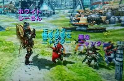 月隠のオトモアイルー師匠のTwitter開始1周年アニバーサリー☆パーリィナイト【MHX】 モンハン 2016年12月15日 2016年12月14日は、ニャンターやオンラインの師匠・月隠のオトモアイルーちゃんのTwitter開始1周年だったそうです。 おめでとうございま~す☆ ついでに、私はいつからフォローしてるのかな~?と思って確認する方法を少し探してみたけど、わかりませんでした。 たぶん私がTwitterアカウントを作ったのは2015年12月11日頃だと思います。(ブログに書いてました) モンハン関係の人をフォローし始めたのが2016年お正月頃だと思います。 結構早い段階で師匠の事はフォローしてたと思うのでもう結構経ってるんですねぇ~。 たぶんね。 それで、昨夜はその師匠が1周年のアニバーサリー☆パーリィナイト部屋を作られていたのでまたもや参加させてもらいました。 参加は、月隠師匠、ドナマリさん、サエジマさんでした。 サエジマさんとは初めてでした。 皆さん最初はニャンターだったので偽サンタはウヘヘヘヘってなってました。 っていうかいつも通り師匠とドナマリさんは終始ニャンターですけどね(^^) ドナマリさんちの新顔(ΦωΦ)セレネちゃんも登場♪ 結局、クエストが始まるとサンタのコスプレで行く勇気がなくてすぐに着替えました(笑) ①燼滅刃狩猟依頼10 HR340になりました。 ②紅兜狩猟依頼10 1乙してしまいました。 ③鎧袖一触のパワフルアームズ HR341になりました。 ④四天王と暴喰の王 強いっ! ⑤舞うは嵐、奏でるは災禍の調べ HR342になりました。 ニャンター・いっちゃんで行きました。 ⑥宝纏狩猟依頼10 いっちゃんのレベルが48になりました。 ⑦紫毒姫狩猟依頼5 ハンター・うたこに戻りました。 ⑧カプコン・覇王烈昂 HR343になりました。 ⑨最強への挑戦 あんた(みんな)も好きねぇ~、強いクエストが。 相変わらずの強烈な金銀夫妻でしたが、クリアできました。 めでたし、めでたし。 今回は回線が獰猛化することもなく、たくさんのクエストをこなせました。 そういえば!お気付きですか? ドナマリさんがHR999っていうのは(私の中で)有名なんですけど、よくよく見るともうお一方、お名前が憧れの水色ではないですかっ! サエジマさんです。 なんと、4人中2人がHRカンストです。 なんて強そうなパーティでしょう。 だからきついクエストがいっぱいだけどたくさんこなせたんでしょうね。 ということで、今回も楽しかったです。 月隠師匠、 ドナマリさん、 サエジマさん、 お疲れ様でした&ありがとうございました~! Twitter開始2周年アニバーサリー☆パーリィナイトはMHXXでお祝いですね?! 楽しみにしてま~す♪ 他のモンハン記事はコチラ→モンハン PR