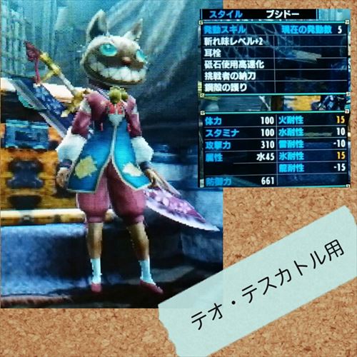 装備セットって足りませんよね?【MHXX】 モンハン 2017年07月31日 こんばんは~! 実は衣装持ちのうたこです。 MHXXでは結構ニャンター頻度が高めですが、それでも心配性なのでモンスターごとにハンター用の装備セットを作るくせがなかなか抜けません。 二つ名防具ももうすぐ全部(剣使用のみ)最終強化まで終わりそうです。 着るかどうかはわからないけど(笑) 先日、人間でウカムルバスを狩ったときに苦戦したので、専用装備を作ろうと思いました。 アカムトルム用はネセト一式で作っていましたが、このたび、ウカム用装備を新調するにあたり、見直すことにしました。 こちらが新作&見直した装備です。 色々作ると装備セットって足りなくなりますよねぇ。 MHXでいっぱいだったのですが、MHXXに引き継いだ時に一回全部消しました。 だけど、少しずつ作っていたらまたまたいっぱいになってきました。 この悩みは現実に近い問題ですねぇ。(断捨離せねば!) ところで、このウカム用装備を最終強化するには「古龍の大宝玉」が足りません。 もう全然足りません。 更に、私がたまに着ているワニザメ装備セットも最終強化する為に「古龍の大宝玉」が要ります。 ということで、今宵は「古龍の大宝玉」集め祭をすることに決めました。 この大宝玉がもらえる可能性があるのが、オオナズチ、クシャルダオラ、テオ・テスカトルです。 もうこうなったら、それ用のセットも作っちゃいます。 見た目が気に入らなかったものもあったので、合成もしました。 今夜の素材集め集会所が楽しみであります♪ 他のモンハン記事はコチラ→モンハン PR
