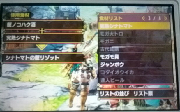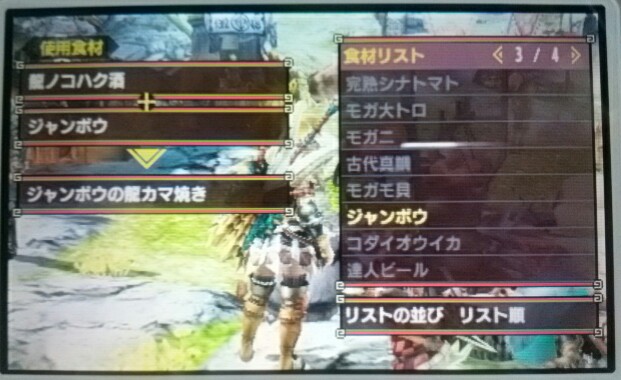 龍ノコハク酒GET→ベルナ屋台のメニュー増えたよ【MHX】 モンハン 2016年03月06日 最近、モンハンの記事しか書いてないですね。 モンハンしかしてませんからね(笑) さて、ペースが早すぎて一体いつの間になのかわかりませんが、「龍ノコハク酒」なる食材を手に入れておりました。 忘れないうちにベルナ屋台へ行ってみましょう~♪ 龍ノコハク酒+モガモ貝=モガモ貝のみぞれ龍煮 龍ノコハク酒+完熟シナトマト=シナトマトの龍リゾット 龍ノコハク酒+ゼンマイ米=ゼンマイ米の龍寿司 龍ノコハク酒+ロックラッカセイ=ラッカセイの龍炒め 龍ノコハク酒+リノプロシュート=酒のジュレと生ハムの龍サラダ 龍ノコハク酒+ジャンボウ=ジャンボウの龍カマ焼き ところで皆様はどの料理がどの効果とか覚えてらっしゃるのですか? 私は全然覚えてません! とりあえず、今は報酬が増えるって書いてあるのをよく選んでます♪ (それもこれもオトモの為!) なぜか毎回食後にフラフラしています。 何ですか、アレ? 酔っ払ってるの? 他のモンハン記事はコチラ→モンハン PR