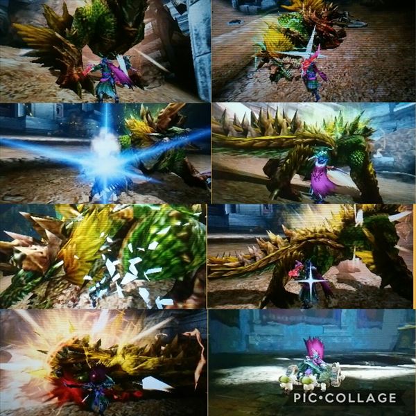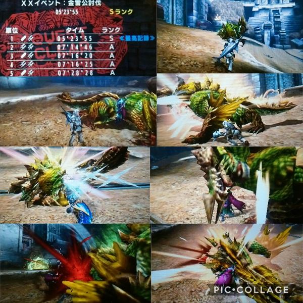 224回目オンライン【MHXX】 モンハン 2017年08月16日 こんにちは! 昨夜は、闘技大会チャレンジクエスト「XXイベント:金雷公討伐」で遂にSをゲットしました。 いつも通り、遅い時間から何でもOK、Z順部屋を作っていたのですが、結局、最初から最後まで二人だったので、ほぼ闘技大会で遊びました。 1回だけ気分転換に獰猛化ラージャンと戦いましたが、クリアできず悔しい思いをしただけでした(笑)。 双剣×2で何度かしていましたが、大剣で速く倒している動画を見たので、試しに私が大剣にチェンジしてみたところ上手くいきました♪ 双剣(デカマルコさん) ×大剣(うたこ)で 05:23:55でした。 そのあとも二人だし、獰猛モンスターは強いから息抜きにならないし、闘技大会を続けました。 チャレンジクエスト「XXイベント:白疾風討伐」 何度かしましたが、最高で7分3秒。 あと3秒っていうのがまた悔しい~!! 右手が痛くなってきたので解散しました。 まだまだ先は長いけど、オトモ装備を集めたり、写真撮影会したり、楽しく遊んだりしつつ、いつかはチャレンジクエストでも全部Sをとりたいです。 デカマルコさん、 お疲れ様でした&ありがとうございました~! 他のモンハン記事はコチラ→モンハン PR