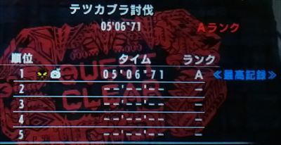 闘技大会ウラガンキンのSが取れない(イャンガルルガはタイム更新)【MHXX】 モンハン 2017年06月04日 こんにちは。 昨日は、夕方から夜中まで(休憩のため中断はしました)ずーっとretさんと闘技大会を頑張っていました。 前回、retさんと遊んだ時には無理だったイャンガルルガとベリオロスではSが取れました。 イャンガルルガの方はタイムも更新しました ♪ まずはイャンガルルガ。 ギリギリ取れなかったりしつつ ↑ も最終的にはS獲得 ↓ 弓(retさん) × 双剣(うたこ) で 04:21:30(記録更新)でした。 いえーい! ベリオロスは・・・ ライトボウガン × ライトボウガン で 04:31:90 でした。 初めてクリアした時の記事に書き忘れていたけど、ベリオは最初に翼を破壊するのがSゲットへの近道です。 火炎弾LV2で最初に翼を撃ちまくれば結構すぐ壊れます。 そのあとはひたすら頑張って撃ちまくることです(笑) 次、ウラガンキンいきます。 こいつが大変で大変で結局Sが取れていません。 途中で出たこの記録 07:10:20 が現時点の自己ベストです。 その後は、さっきの記録を越えることもなく、たぶん集中力的なものがなくなってきたんでしょうねぇ。 Sが取れないまま解散しました。 何回やったかわかりませんけど、クリア画面の写真が15枚はあるので少なくとも15回はやったんだと思います。 たまには弱い固体とか出てきても良いよ(?) 基本的に、笛(retさん) × 大剣(うたこ)を選択しています。 ヘビィボウガンが良いという噂も聞いたので、ちょっと練習してみましょうか・・・。 (うちの闘技場のランキングでも一位の人は ヘビィボウガン × 大剣 でした) ガンナーは個人的にかなり難しいけど、ベリオロスも一応それでいけたので、やるだけやってみます。 retさん、 お疲れ様でした&ありがとうございました~! また続きやりましょう o(`^´*) 他のモンハン記事はコチラ→モンハン