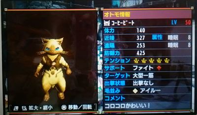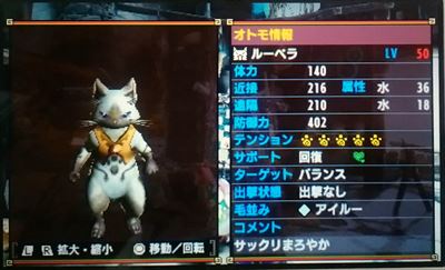祝・自分で雇ったコ達が皆LV50になりましたฅ(*ΦωΦ*) ฅ【MHX】 モンハン 2017年02月05日 わーい、嬉しいー♪ ネコ嬢やネコバァから自分で雇ったオトモ達をコツコツ育てていました。 遂に、全員レベル50になったんです~(*´∀`*)ノ。+゚ *。 紹介しますね~(ΦωΦ) 以上、各サポート2匹ずつ、お菓子の名前で揃えたオトモ達でした~♪ 最初の頃から少しずつ雇ったため、スキルはそんなにアレですが、皆かわいいウチの猫ちゃんです。 ずっと一緒にクエストに行ったりして育てたんですよ~(^^) それから、他のハンターさんに譲っていただいたオトモもあと少しで皆LV50です。 デカマルコちゃんよりジダンちゃん。 小嶋Pより(すれ違いで)いっちゃん。 サエジマさんより黒マジニャンちゃん。 まだLV41だけどサエジマさんよりララちゃん。 この子を育てたらみーんなLV50になります。 特別配信のオトモはゆるーく育ったら良いかな~と思ってます。 以上、ウチの自慢の可愛いアイルーちゃんでした~♪ 他のモンハン記事はコチラ→モンハン