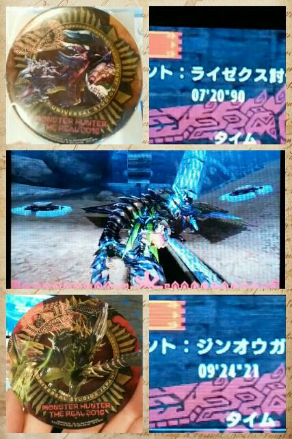 モンスターハンター・ザ・リアル 2016【MHX】 モンハン 2016年06月24日 ついに、ついに!行って来ました!モンスターハンター・ザ・リアル!2016! 本当は朝から行ければベストですが、着いたらお昼になっていました。ということで、まずはお食事!今まで行った事がある場所にはモンハンコーナーが無く、(よくわからないけど、たぶん)巨人がいました。進んでいくと奥にディノバルドと屋台が見えました~♪やったー。では、こんがり肉Gからいただきましょう。今年も重い・・・。私が前回行った時はただのこんがり肉だったみたいなので、Gになって大きくなってるのかも。 ニャンコック料理長のチーズフォンデュまんはあとでオヤツとしていただきました~(^^)肉が肉肉しすぎて逆にスタミナが減ったような気が・・・。気のせい、気のせい。さぁ、ベルナ村に出発~! ちょっと写真を小さくしすぎましたか?装備品やハンターやプーギーがいました。いつも大剣を装備している私としては大剣が気になります。近くで見ると、本当に大きい!これを軽々装備しているハンターはそりゃ~こんがり肉Gぐらいペロリと食べるでしょうねぇ。ディノバルドは屋台の前の所にいました。金雷公ジンオウガと黒炎王リオレウスはベルナ村の奥にいました。 ディノバルドには乗り状態で写真が撮れるサービスも。自分の持ってきたカメラでも1枚は撮ってもらえますよ。私はUSJ仕様の写真も購入しました。1800ゼニーでした。金雷公ジンオウガは、本物(?)のビリビリを近くで見たら怖かったですね。まだ戦ってないんですけど、会いたくないです。普通のジンオウガでもイヤですもん。黒炎王リオレウスも、同じく怖かったですよ。以前のモンスターハンター・ザ・リアルのリオレウスと違ってて使いまわしじゃないのがスゴイなと妙な感心をしてしまいました(笑)そして、お楽しみのリアルアイルーちゃん 毎度毎度かわいいですな!実はアイルーちゃん毎日出勤じゃないらしく、調べずに行ってたのですが会えて本当に良かったです。人見知りなんで、写真を撮ってもらうのも緊張しました。まるでストーカーのごとくたくさん撮らせてもらいました、ふふふ。それから、これ、タイムアタックです!今日まで(数日)練習した、あのタイムアタックです。時は来た!それだけだ。はい。まずは、ルーキーから。今日は、ジンオウガを20分以内で倒せ!というクエストでした。練習ではSが取れたのでいけるはず!やった、いけました!7:20:90でした。ライゼクスのステッカーをもらいました。次は、ベテランにも挑戦。ライゼクスを14分以内で倒せ!というクエストです。修行してもらったライゼクス。しかも14分以内とは予想以上の長め設定。(6分以内だと思い込んでいました)これは缶バッジいけるか?! わーい、9:24:21で間に合いました!ディノバルドの缶バッジGET~!!嬉しいです!ベテランをクリアしたのは初めてです(^o^)もう「キャリアは中堅、腕前はルーキー、その名はうたこ!」って言わなくて良いですよね?(←今まで一回も言った事ないけど)練習した事には意味があったのですね~。指導してくださったMさん、ありがとうございました!さて、1回でクリアできると思っていなかったので時間が思ったより余りました。モンハングッズは、調合書お菓子を買おうと思ったけど、他のお土産SHOPにもあるかもと思って後で買うことにしました。そういえば以前はモンハンタオルが日本製だったのに、今回はベトナム製と中国製になっていたのが少し残念でした。せっかく高い入場料を払ったので、他も楽しみましょう。進撃の巨人もEVANGELIONもきゃりーぱみゅぱみゅも知らないしどうしようかな~。そうだ、見た目も涼しそうなHarry Potterエリアに行ってみよう。雪の積もるホグズミード村を歩いて行くとホグワーツ城が見えてきました。時間が時間だったのでホグワーツ城を歩くツアーみたいなのは終わっていました。残念。でも、ハリー・ポッター・アンド・ザ・フォービドゥン・ジャーニーなる物には乗れました。乗る前に動く肖像がも見られたし、満足です。 湖に映るホグワーツ城。キレイ。ハリーポッターもおさらいしておけば良かったかな。そんなこんなで、非常に楽しい日になりました!!あと、数日でモンスターハンター・ザ・リアルは終わってしまいますが、今からでも行ける方は是非!あ、モンハングッズですね、他のSHOPで見つからなかったので何も買わずに帰りました。欲しい場合は、ちゃんと17時頃までにモンハンコーナーで買う方が確実ですよ。他のモンハン記事はコチラ→モンハン
