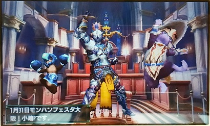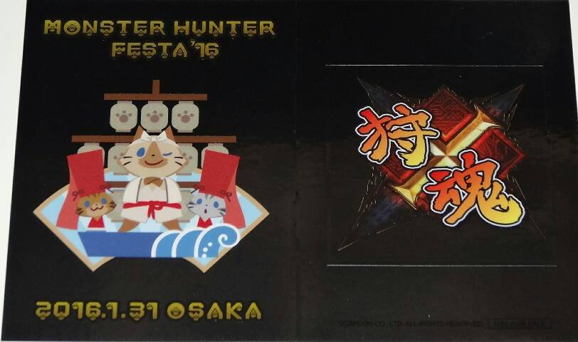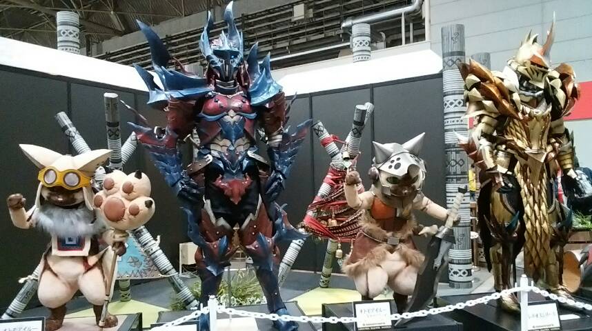 モンスターハンターフェスタ'16(大阪)行ってきました【MHX】 モンハン 2016年02月01日 こんにちは。 今日から2月ですね! つい最近までお正月気分だったのにもう2月か~、早いな~。 さて、昨日1月31日に「モンスターハンターフェスタ'16」大阪へ行ってきました。 2013年のフェスタに行って以来なので2年以上ぶりです。 わくわく(^・ω・^) 冬なので気温が心配でしたが、快晴だったのでそんなに寒くはなかったです。 会場はインテックス大阪 2年前より人が多くて、入場するまで結構時間がかかりました。 冬とはいえかなりお天気が良かったので日焼けが心配になりました(笑) 入ってすぐにモンハンクロスの4大メインモンスターがお出迎え。 一応、全モンスターに会った事がある状態で行けて良かった~。 私の好きなタマミツネのアップ ↓ 私の好きなタマミツネの横顔 ↓ かっこいいけど、こうして近くで見るとやっぱり怖いですね。 狩王決定戦やってました。 上手な人のプレイは見ていて気持ち良いですよね。 (でも時間が足りなくて今回はほとんで見てません) こんな豪華なタテがもらえるんですね? (時間がなくてほとんど狩王決定戦を見ていないのでよくわかりません) 色々な場所に調合書がさりげなく置いてありました。 ディノバルドと記念撮影できました。 尻尾に跨って撮ってる人とかもいてちょっとうらやましかったけど自重しました。 ガムートの鼻に巻かれている状態(に見える)写真が撮れるコーナー。 こちらと、タマミツネの泡に入っている状態(に見える)写真が撮れるコーナーが面白かったです。 この装備いいね ↓ 作ろうかな 本当は原画ももっとたくさん見たかったけど、全部見るには時間が足りませんでした。 カプコンの辻本Pのモンハンラジオ「良三の部屋」の公開収録もしていました。 ゲストはMHXのCMに出ているDAIGOさんとフェスタでお馴染みゲッターズ飯田さんでした。 写真撮影が禁止だったので、お見せできる物はありませんが、記憶にある事を書いておきます。 ラジオは確か2月4日に公開予定という事だったので、詳細はそちらを聞いていただければと思います。 DAIGOさんの登場の際には、会場の皆で「結婚おめでとうぃっしゅ」と言いました。 DAIGOさんは、忙しいのにHR47・プレイ時間が138時間でした。 睡眠時間を削るしかないと。 大剣エリアルスタイルがお気に入りらしいです。 私も大剣エリアルばかり使っているのでちょっと嬉しくなりました。 それにしても私よりプレイ時間が長いとは・・・。 ゴールデンボンバーのvo.以外のメンバーと狩りに行ったり、奥様の北川景子さんと狩りに行ったりするそうです。 奥様は「タマミツネの爪が出ない!」と嘆いていらっしゃるそうです。 ゲッターズ飯田さんに占いをしてもらったりもしていました。 DAIGOが自分で考えた二つ名「MTのDAIGO」(まるちたれんとのだいご)という名前で占うというよくわからない企画でした( ゜Д゜;) DAIGOさん、ゲッターズ飯田さん、辻本P、小嶋Pの4人でライゼクスの狩猟もしていました。 ゲッターズ飯田さんは、ずっと笛しか使ってないとおっしゃっていました。 1人でも笛か~。 私もMH4で少し笛を使っていた時期がありましたけど、結局大剣に戻ったんですよね~。 「良三の部屋」は1時間ぐらいでした。 床に座るのでお尻が冷えるし狭かったけど面白かったです。 モンハン部からも聞けるようなので、公開されたら改めて聞いてみたいと思います。 お昼は、モンハンの屋台で食べたいのはやまやまだったのです。 が、既に疲れていてお腹もすいていたし、行列がすごかったし、座るところも全然なさそうだし、結局、近くのレストランに行って普通のカレーライスを食べました。 落ち着いて座ってゴハンが食べられたので、まぁ良かったかな、と。 そして、そこでDSを開いたところ、小嶋Pとすれ違っていた事が判明しました! ギルドカードにちゃんと「1月31日モンハンフェスタ大阪!小嶋Pです。」というコメントが書いてありました。 私もちゃんとコメントをフェスタ用に変えてたんですけど、意外と変えない人が多いんですね。 小嶋Pのギルドカード本物かな~?と思って見てみたら、前日の1月30日にゲッター飯田さん他と狩りに行ったりしてて本物っぽかったです。 ちょっと人混みから離れてゆっくり休憩できたので午後からも見るぞー!と思って張り切っていましたが、楽しい時間はあっという間に終わってしまいました。 私が食べられなかった屋台のメニュー。 興味ひかれる名前の料理が多い中、特にコレが気になりました ↓ アイルーたち。 時間がなくて一緒に撮影できなかったライゼクス ↓ 武器の小道具とかも置いてあったから撮りたかったな~ そういえば今回は、動くアイルーとか動く装備の人とか動く団長がいないな~と思ってたのですが、どうやら私が会えなかっただけでアイルーはいたみたいです。 モンハンフェスタのツイートか何かで見ました。 会いたかったのにな~残念!! 2013年にはアイルーも見られたし、若
