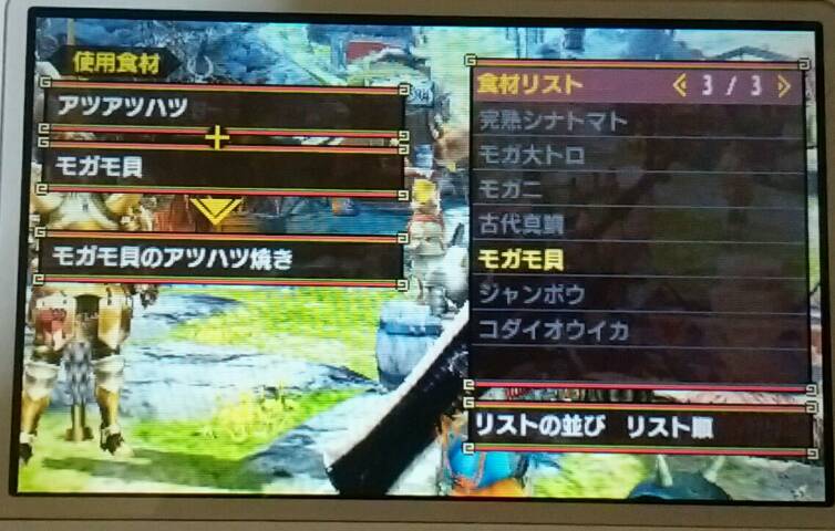 ベルナ屋台にまたメニューが増えました♪【MHX】 モンハン 2016年02月17日 HRが一気に二つ上がったので村人達の赤や黄色のフキダシ処理が予想以上に時間かかりました(p・Д・;) 話を聞くだけで大体30分ぐらいかかったと思います。 しかし、それに伴い食材「コダイオウイカ」「アツアツハツ」が手に入ったので、メニューが増えました。 わーいヾ(*´Ο`*)/ コダイオウイカ+ロックラッカセイ=コダイオウイカのリング揚げ コダイオウイカ+ゼンマイ米=コダイオウイカのイカめし アツアツハツ+リノプロシュート=リノハツサンドウィッチ アツアツハツ+ホロロース=ロースハツ丼 アツアツハツ+モガモ貝=モガモ貝のアツハツ焼き アツアツハツ+ジャンボウ=アツハツジャンボウ鍋 効果とか載せるのが正当なブログかもしれないけど、私は「美味しそうだね~」ぐらいしか書けません(笑) 遊ぶのもモチロン楽しいんだけど、こんなメニューとか考える人(カプコンの人)も楽しんで作ったんじゃないかな~と思います。 他のモンハン記事はコチラ→モンハン