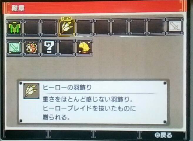 ライゼクスの狩猟やってみました【MHX】 モンハン 2016年01月26日 村クエ★★★★★最初はココット村の村長からの依頼「翠玉の閃電」をやってみました。 メインターゲットがライゼクス1頭の狩猟。 サブターゲットがライゼクスのトサカ破壊。 一度遭遇した事はありますがその時は最終的に私が逃げたので、ちゃんと戦うのは初めてです。 初対面の時には気付かなかったけど、翼が蝶の羽根のようでよく見ると少し気持ち悪いです。 いきなり乗れました。 やっぱりエリアルスタイル良いですね。 一応トサカも狙いましたが難しい…。 と思ったら私がウロウロしてる間にオトモがトサカを壊してくれました(=・ω・=) 優秀! しかもキラキラしてる物を拾ったら逆鱗でした。 幸先良いねー。 尻尾も切れるかな~と思って斬りまくったのですが切れる前に倒しちゃいました。 ココット村の村長さんに報告に行くと、剣をくれると言うではありませんか。 この前私が意味もなく抜こうとしたヤツですね。 あの時は抜けなかったけど…。 今度は抜けました~! 片手剣のヒーローブレイドです。 説明には「ワシを超える猟人になることができるかのぉ?!」と書いてあります(笑) 頑張るよー! 剣を抜いたことにより勲章ももらえました 31日のモンハンフェスタに行こうと思っているのでそれまでにできるだけ色んなモンスターと会っておきたいなぁ。 他のモンハン記事はコチラ→モンハン