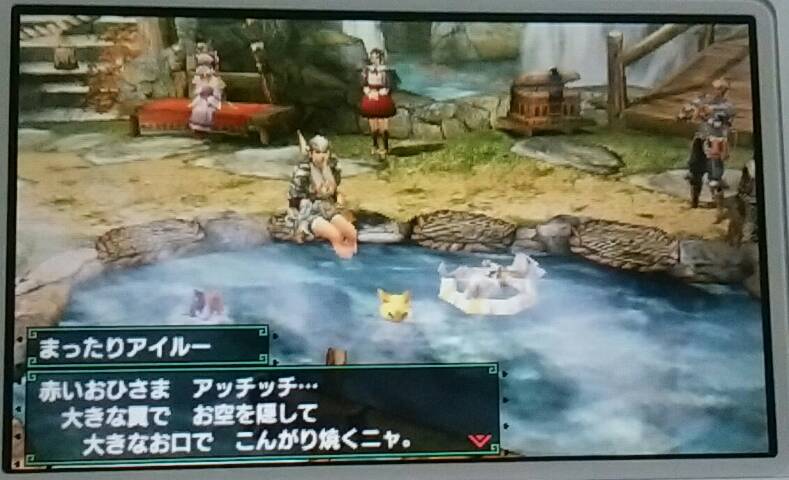 まったりアイルー【MHX】 モンハン 2016年01月25日 ユクモ村の温泉に浸かっていた「まったりアイルー」があまりにも可愛かったので特別ページを書くことにしました。 まったりアイルーを愛でるためのページです。 写真を貼っているだけですが(笑) 癒されたいときにご覧ください。 ふわふわ ぷかぷか ゆったりと。 はぁ~、癒された。 他のモンハン記事はコチラ→モンハン