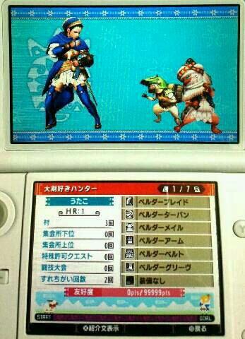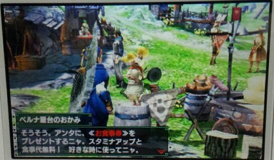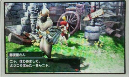 MHXやってみた 1/2 モンハン 2015年11月28日 写真を撮りながらやったから時間かかりました。 それに、限界までやって最後の方は朦朧としてました。 長いので二つに分けますね。 今後はこんなペースで記事が書ける気がしません。 まぁ、最初なんで。 ということでスタート。 ムーファという生き物らしいです。 羊みたいでカワイイです。 思わず撫でたら懐かれました。 前回もご紹介したカワイイ郵便屋さんです。 自宅公開。 この黄色の「・・・」懐かしいです。 話しかけてみましょう。 ルームサービスのコでした。 頑張ってくれそうなコです。 外に出ます。 お食事するところのおかみさんです。 ところで気付きました? 服の色を変えてみました。(どうでもいいか) プーギー的な・・・? 最初に見た羊みたいな動物の子どもですね。 プーギー撫でで鍛えた撫でスキルwで、簡単に懐かせました。 だっこしてやる! 親子共々私にベタ惚れだな。 突然、ギルドカードの確認です。 シンプル! まだハンターになってもないような状態なのでHRはありません。 村長に龍暦院の主席研究員に話しかけろと言われていました。 他の人に話しかけてからが鉄則ですからね~、目の前(画面左の人)にいるのにただの職員に先に話しかけてみます。 やっと目的の人とお話。 また村長の所に行かないといけなくなりました。 RPGあるあるですね。 やっとクエストを受ける事ができそうです。 長いのでこの辺で分けますね。 続きは「MHXやってみた 2/2」へ。