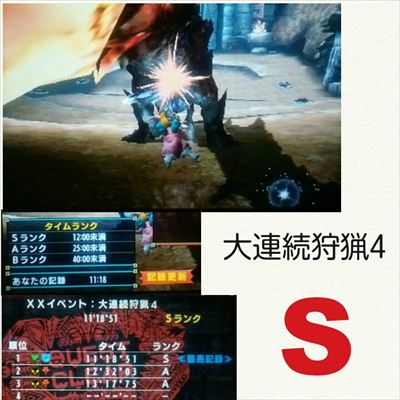 216回目オンライン【MHXX】 モンハン 2017年08月06日 昨夜、IKEさんのお部屋から帰ってから数時間後… 特に告知はせずにフレンドパス不要の部屋を作りました。 デカマルコさんが来てくれたので、他に誰かが来るまで闘技大会のチャレンジクエストをやりましょう、ということになりました。(結局、最後まで誰も来なかったですw) ハンターよりはSをとりやすいと踏んでニャンタークエから消化していくことにしました。 勲章が増えるわけでもなんでもないですけど、ここまできたら全部Sをとりたいです。 まずは、「XXイベント:轟竜討伐」 ファイト(デカマルコさん) × ビースト(うたこ)で 05:10:08 でした。 「XXイベント:迅竜討伐」 ファイト(デカマルコさん) × ビースト(うたこ)で 06:27:41 でした。 この組み合わせ、良いかも! 「XXイベント:雷狼竜討伐」 ファイト(デカマルコさん) × ボマー(うたこ)で 05:49:36 でした。 「XXイベント:大連続狩猟4」 ちょっとこれはまだ無理だったみたいです。 でも、希望がないというタイムでもないので、また挑戦しようと思います。 大連続狩猟4が終わったら、ニャンタークエストが全部終わります。 頑張るぞ~! デカマルコさん、 お疲れ様でした&ありがとうございました~! 他のモンハン記事はコチラ→モンハン
