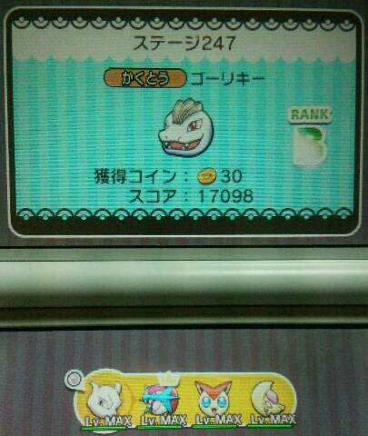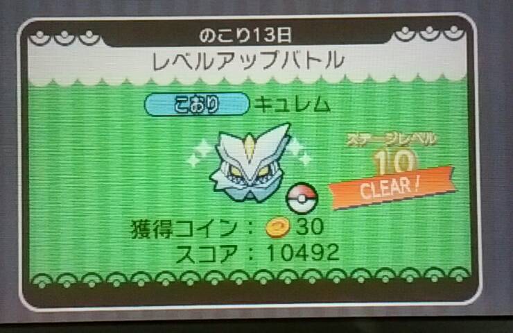 イベントステージでケルディオGETしたい&シェイミを倒してホウセキが欲しい【ポケとる】 ポケとる 2015年12月23日 またイベントステージに新しいポケモンが! レベルアップバトルにケルディオが登場。 私はまだ持っていないので頑張って捕まえたいと思っています。 ケルディオのレベルをどんどん上げていくステージです。 ステージレベルを上げていけば、ケルディオのGET率が高くなるし、報酬でコインやアイテムがもらえます。 私は、現在ステージレベル9までクリアしましたが、まだGETできていません。 できれば100まで上げようと思っているので、たぶん途中のいつかGETできると思います。 倒せばこっちの経験値も増えるので、倒せるうちはレベルMAXじゃないパーティで挑みたいと思います。 そして、記念イベントでシェイミも登場です。 シェイミは持っているけど、初回クリアでホウセキをくれるらしいのでやりました。 他のポケとる記事はコチラ→ポケとる
