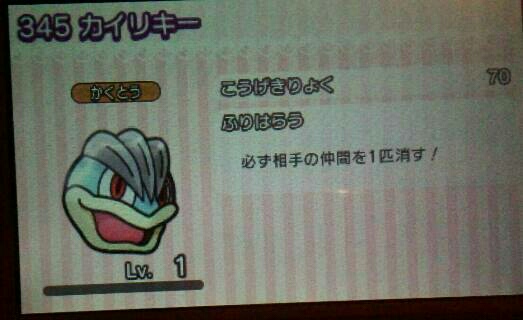 早速カイリキーGET~! ポケとる 2015年11月25日 イベントステージのスーパーチャレンジで「345 カイリキー(かくとう)」をゲットしました。倒した時のパーティーは、おまかせで出てきたヤツそのままですが、一応書いておきます。「158 メガミュウツーY(エスパー)」「275 クレセリア(エスパー)」「156 ゼルネアス(フェアリー)」「245 ビクティニ(エスパー)」でした。捕まえたカイリキーの能力です ↓