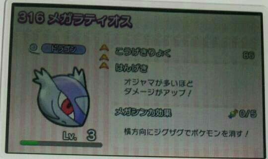 ラティオスもGETした~ ポケとる 2015年11月25日 イベントステージのレベルアップバトルで「316 ラティオス(ドラゴン)」をゲットしました。6%ぐらいでGETできてビックリでした(@_@)強さは ↑ こんな感じです。攻撃力は100までいくし、メガシンカするっぽいので育てます。ということで、今現在、こっちのラティオスはレベル1です。敵のラティオスはステージレベル16までいきました。こっちのパーティーは全部レベルMAXのおまかせでやってましたが、ふと経験値がもったいないなと思いました。そこでパーティーに、相性は良いし育てたいけどまだレベルMAXまでいってない「298 サーナイト(フェアリー)」と「316 ラティオス(ドラゴン)」を加えるとこにしました。今の組み合わせは、「315 ラティアス(ドラゴン)」「156 ゼルネアス(フェアリー)」「サーナイト」「ラティオス」です。ステージレベル16までなら大体メガシンカする前に倒せてます。この先もこのパーティーでいけるかはわかりませんが、イケるとこまではこれでいって少しでも経験値を無駄にしないゾという私のケチっぷり!です。それと、このラティオスのステージレベルですが、アイテムは別にそんなになくて良いと思っている場合でもレベル50までは倒した方が良いですよ!なぜならレベル50を倒すとラティオスナイトが貰えるから。こういうインフォは見逃しがち(私はね)なので要注意ですよ~。↑ ホラね